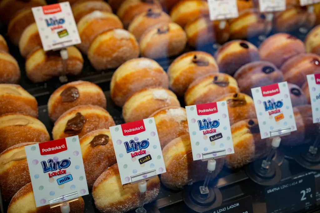 U ponudi se nalaze krafne punjene s čak šest vrsta Podravka džemova: jagoda, borovnica, naranča, višnja, šumsko voće i miješani voćni namaz.